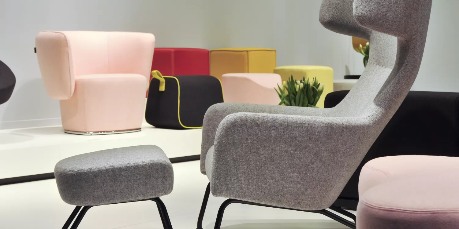Walking around Orgatec, a trade show based in Cologne dedicated to trends in the workplace, often felt more like a trip around an out of town furniture superstore. There were armchairs in comforting colours like lilac and turquoise, stools covered in groovy striped fabric and even the desk screens, so emblematic of the corporate world’s obsession with separating off each worker bee and getting them to work harder, faster and be more productive, were displayed in primary colours.